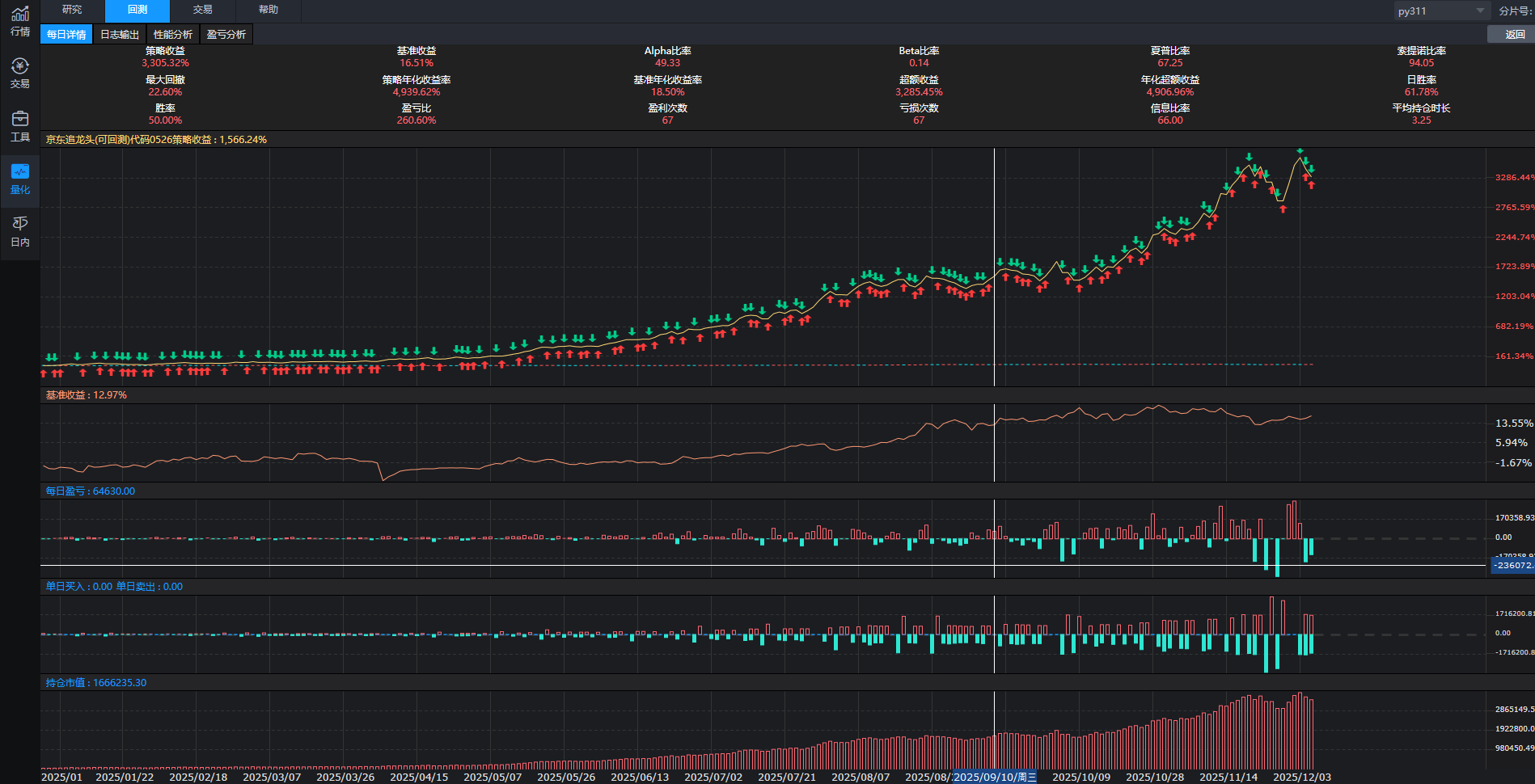 做为小散户要想把资金快速做大,唯一途径就是打涨停,打涨停方法有很多,市场很流行龙头战法,这也叫数板战法,这也是高位接盘战法,这类上涨过程分时图比较极端,上涨过程你往往抱不住,下跌时往往A杀一字跌停你根本卖不掉,本代码买点前置,让别人来给自己接力,市场上目前做得好的就是北京炒家,天天打首板,本人写了一个类似的首板代码。如果想购买低位首板策略做为你投资的参考, 请 从京东APP或者京东官网搜索:证券自动量化交易程序小店,购买前先咨询一下客服,别买错,非诚勿扰 。 非诚勿扰。注意:1.本代码仅供学习参考使用,风险自担。2.代码买以后是终身可以免费使用,系统升级免费售后升级。3.下面图片为今年以来的回测收益,仅供参考。