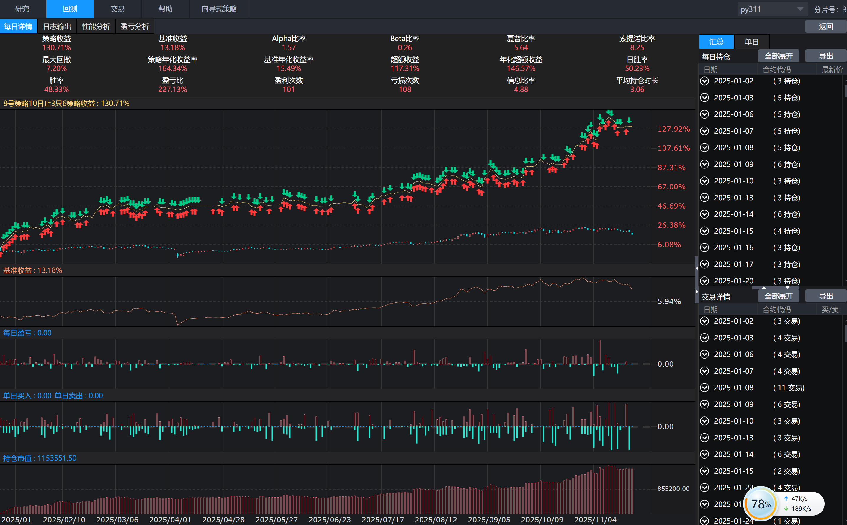 宁波量化策略2.0版本分享 83673140 这家伙很懒,还没有设置简介 0 人点赞了该文章 · 76 浏览 实盘跑起来效果很不错,跑赢90%散户。回测数据相当凑数据,没有多少参考意义,我们策略已经经过多次实盘验证,花了1年半时间不断过优化策略,做到稳定收益,慢慢变富,对于浙江省内Ptrade朋友或主观大户投资或机构投资都可以交流。浙江省的用户可以微信83673140,本人在宁波。策略可以在恒生电子PTrade软件上跑的